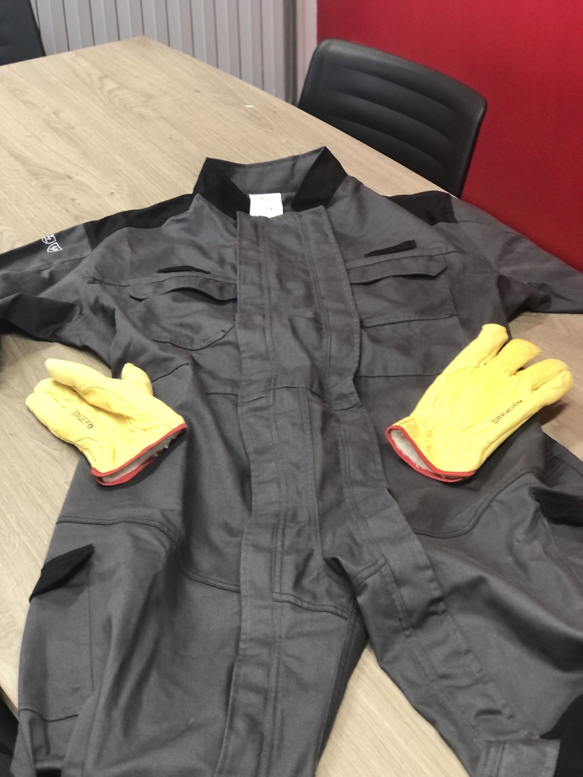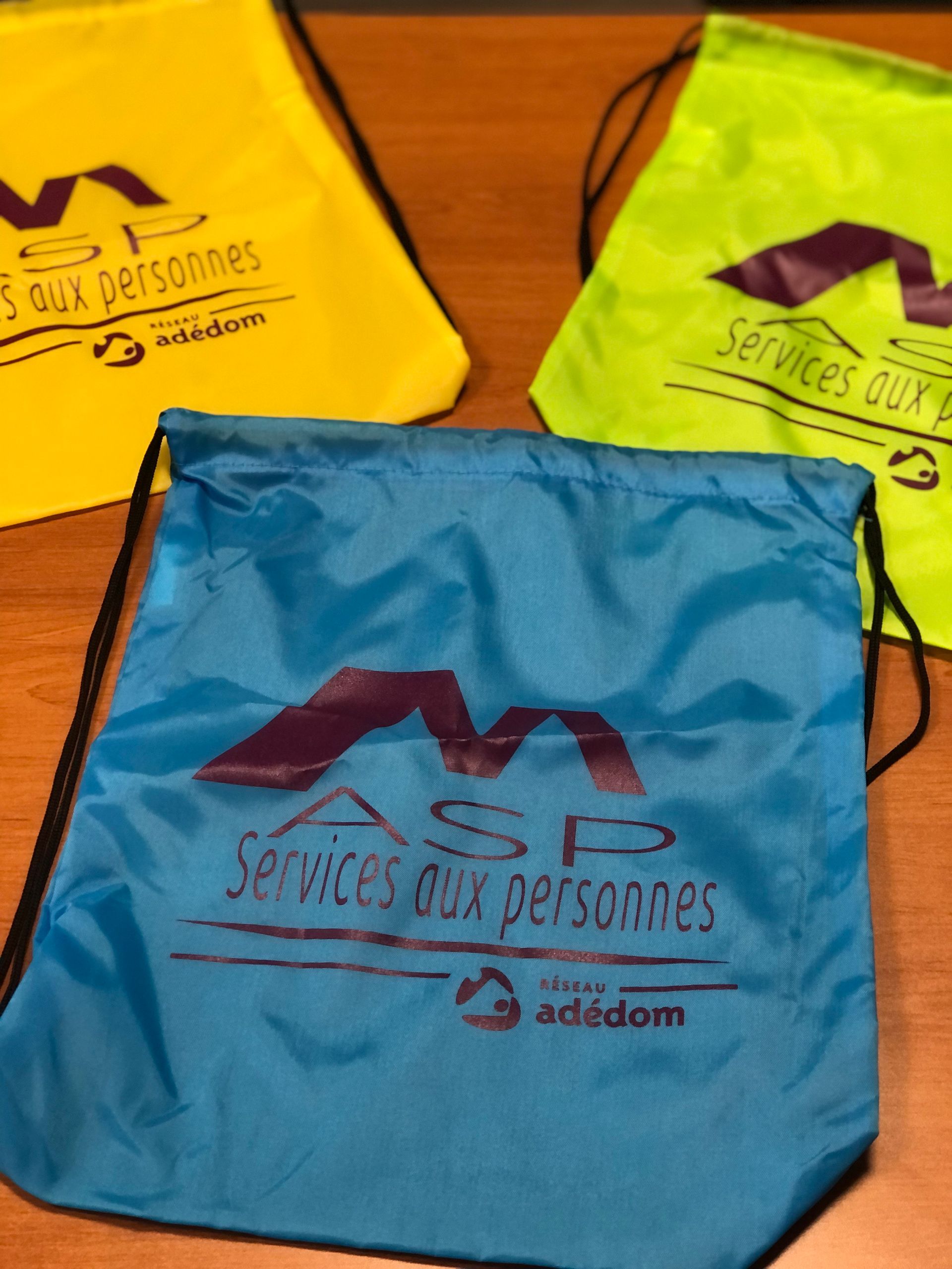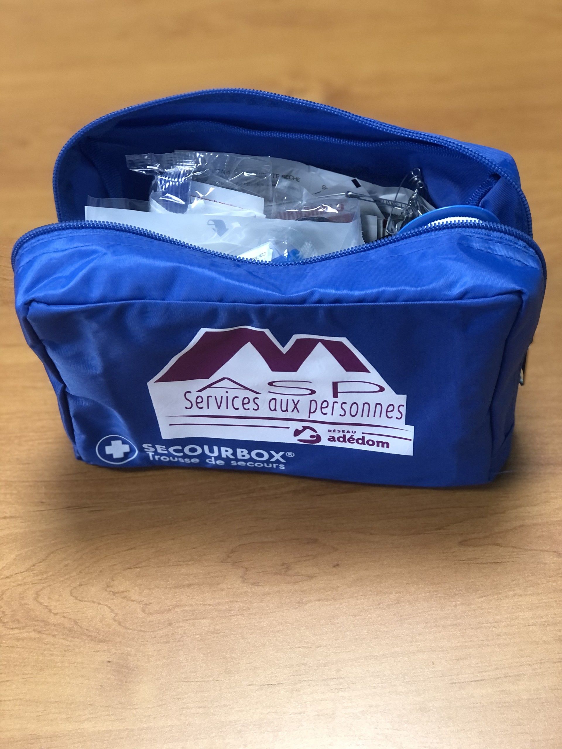 Equipements de protection individuels pour chaque salarié (blouse, baskets antidérapantes, gants ménage, gants pour les toilettes, gel hydraualcoolique, surblouses...) dans un sac cabas accompagné d'une trousse de secours et d'une gourde. Chaque salarié est également équipé d'un pare soleil pour prévenir le risque canicule.